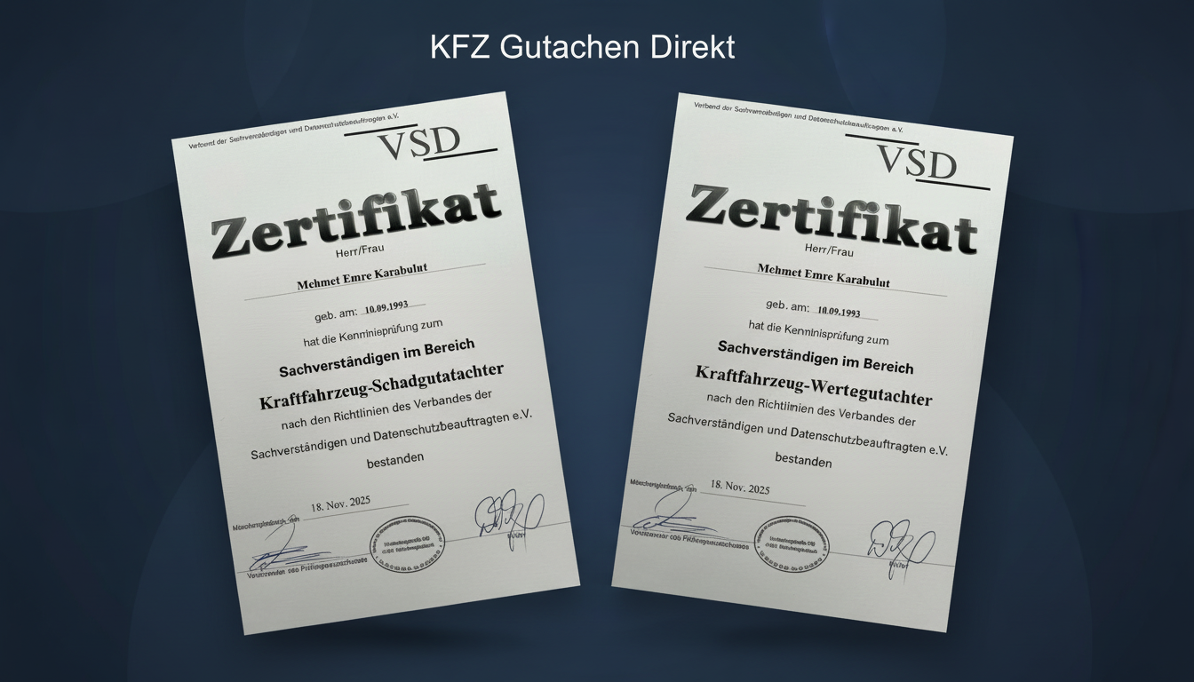 Ihr persönlicher und zertifizierter Kfz-Gutachter – Kompetenz aus einer Hand.